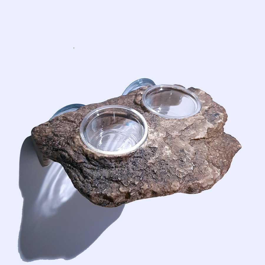 A realistic terrarium-style superfood & water dish designed specifically for gecko species.
