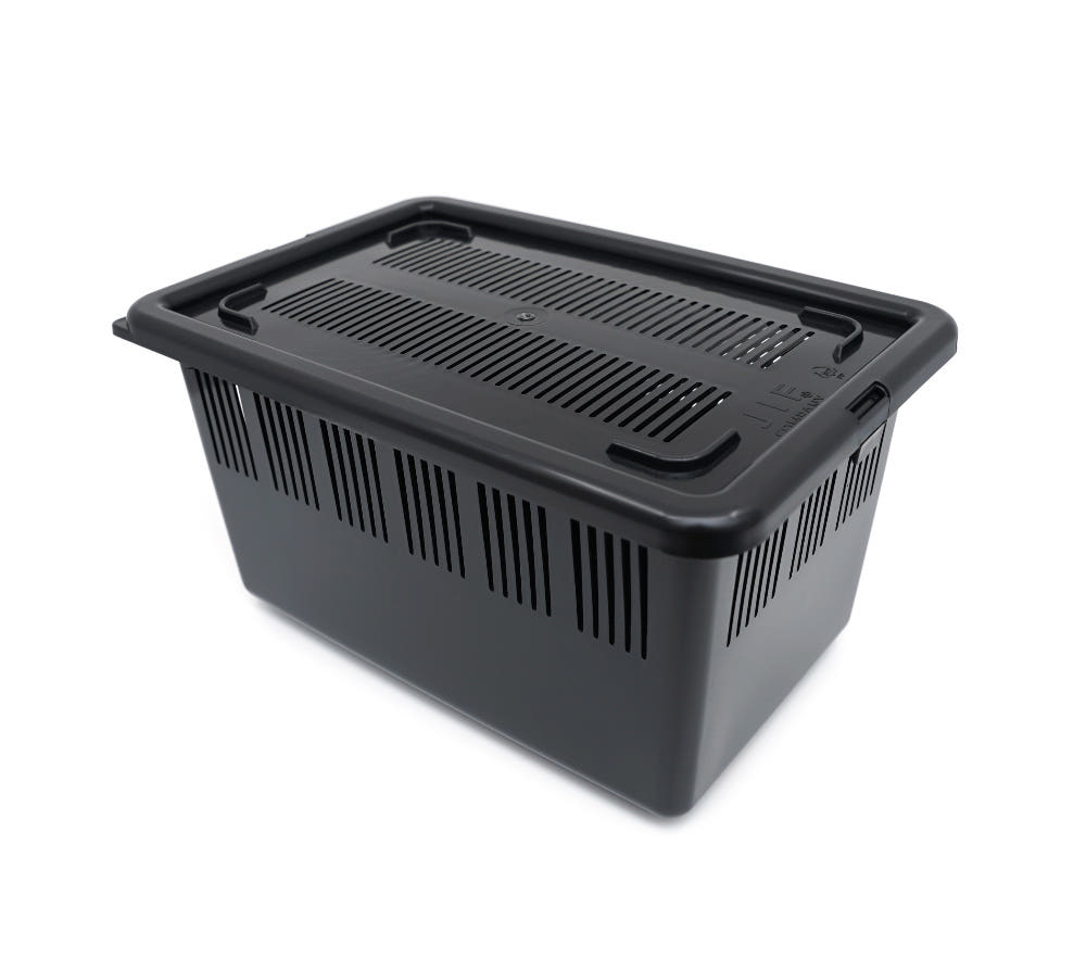 ロック機構を備えたVersion3 高通気 排水フタ仕様の飼育ケースです。