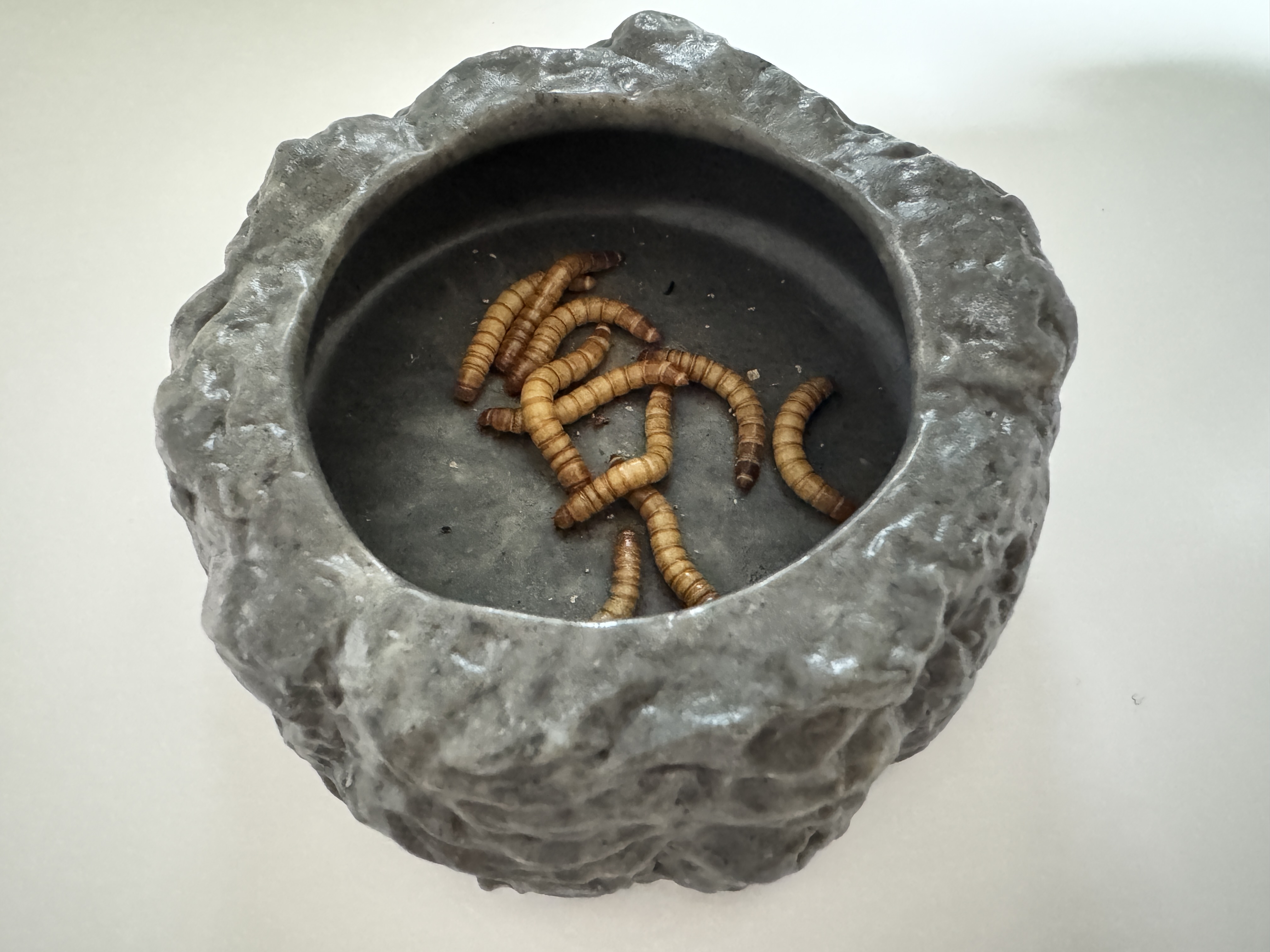 ミルワームを安全に与えるための岩場風ミルワームディッシュです。